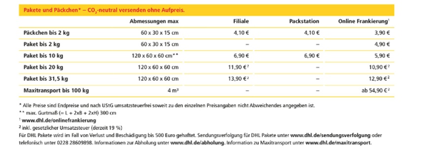 Bezahlt wird bei uns bequem per Rechnung nachdem Sie ihr Bekleidungsstück zurück erhalten haben. Die Versandkosten trägt immer der Auftraggeber. Sie können unten Anhand der Tabelle hier als Beispiel von DHL die Versandkosten entnehmen.