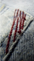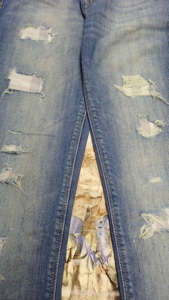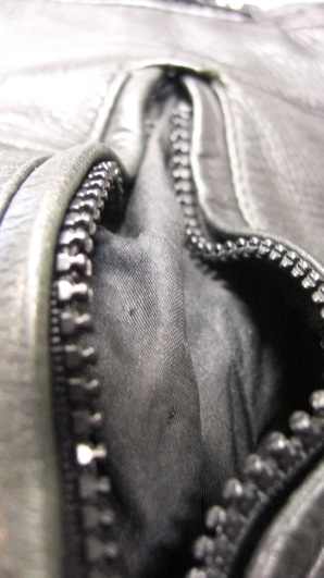 ① Angebrannte Stellen an der Tasche, Bein und Reißverschluss.....