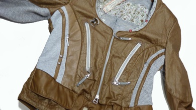 Nur die zerrissene Seite der sehr aufwendig entworfene Lederjacke wurde von uns Ausgetauscht bzw. komplett mit Nahttasche rekonstruiert! Bei genauerem hinschauen entdeckt man nur kleine Unterschiede im Jersey (kein Jacquard) und der verwendeten Lederqualität - kein gelochtes Leder!